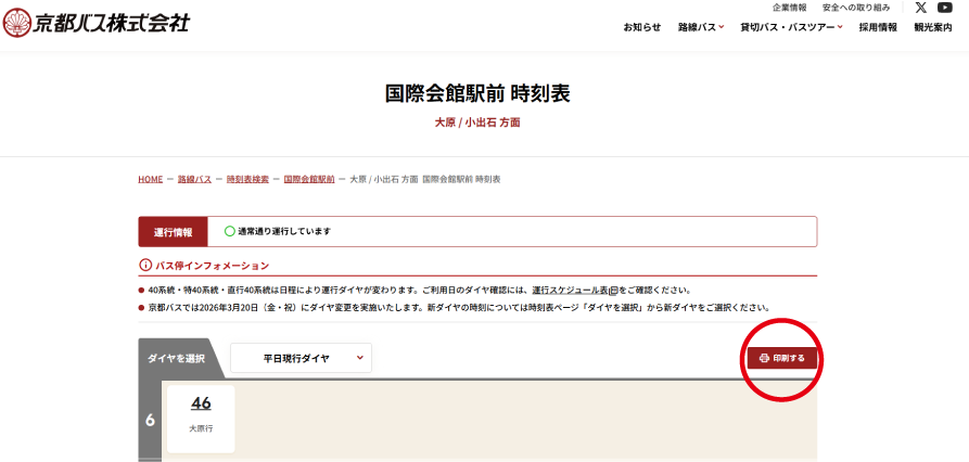 ご不便お掛けしますが、平日・土曜・休日ダイヤごとに印刷をお願いします。